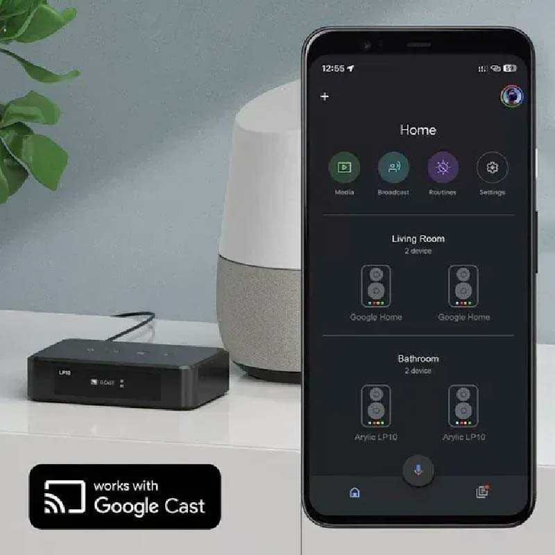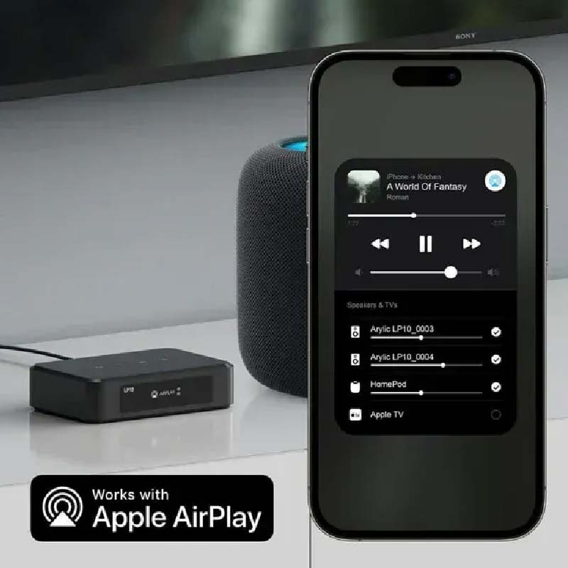 Arylic LP10 Wireless Music Streamer with GoogleCast – компактный сетевой аудио-проигрыватель нового поколения для беспроводного стриминга музыки из популярных онлайн-сервисов и локальных источников. Работает через Wi-Fi, Bluetooth и Ethernet, поддерживает высококачественное воспроизведение до 24bit/192kHz. Предназначен для обновления обычной аудиосистемы или активной акустики, поддерживая стриминг с AirPlay 2, Spotify Connect, Tidal, Google Cast, DLNA, а также воспроизведение музыки с USB-накопителей или локальной сети.