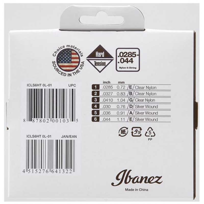 Ibanez ICLS6HT Classic Guitar String 28.5-44 – набор струн для классической гитары с повышенным натяжением (Hard Tension), созданный для музыкантов, стремящихся к большей динамике, четкости и выразительности звучания. Верхние струны из прозрачного нейлона (Clear Nylon) обеспечивают чистый и яркий тон, а басовые струны с серебряной медной обмоткой (Silver Plated Wound) придают глубины и мощности.