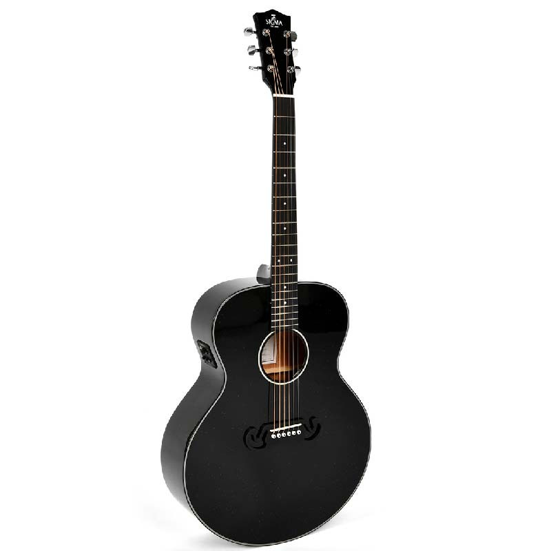 Sigma GJM-1E-MFBK – акустическая гитара, с подключением и электроникой Fishman Presys II. Бескомпромиссный инструмент с массивным звуком и не менее массивным видом. Формат Grand Jumbo с 14 ладами вне корпуса — это о громкости, объеме и присутствии в миксе. Этот корпус создан для сцены, открытых аккордов и динамичного фингерстайла. Главное визуальное преимущество – это глянцевое покрытие Metallic Flake Black, играющее на свете металлическими бликами. Это не просто черная гитара — инструмент, который выглядит как космический корабль в мире деревянной классики.