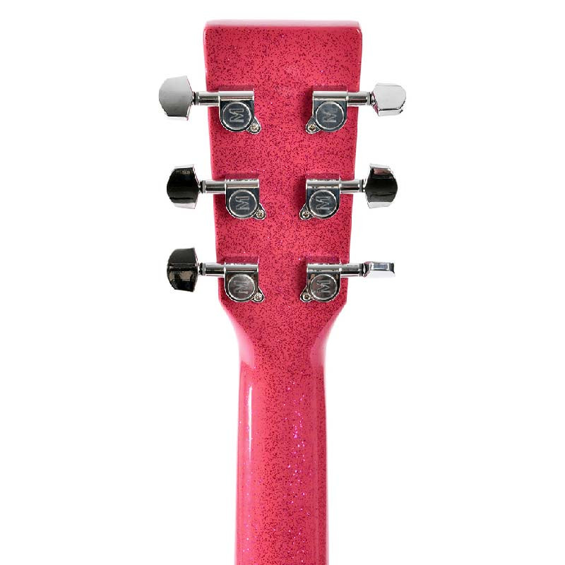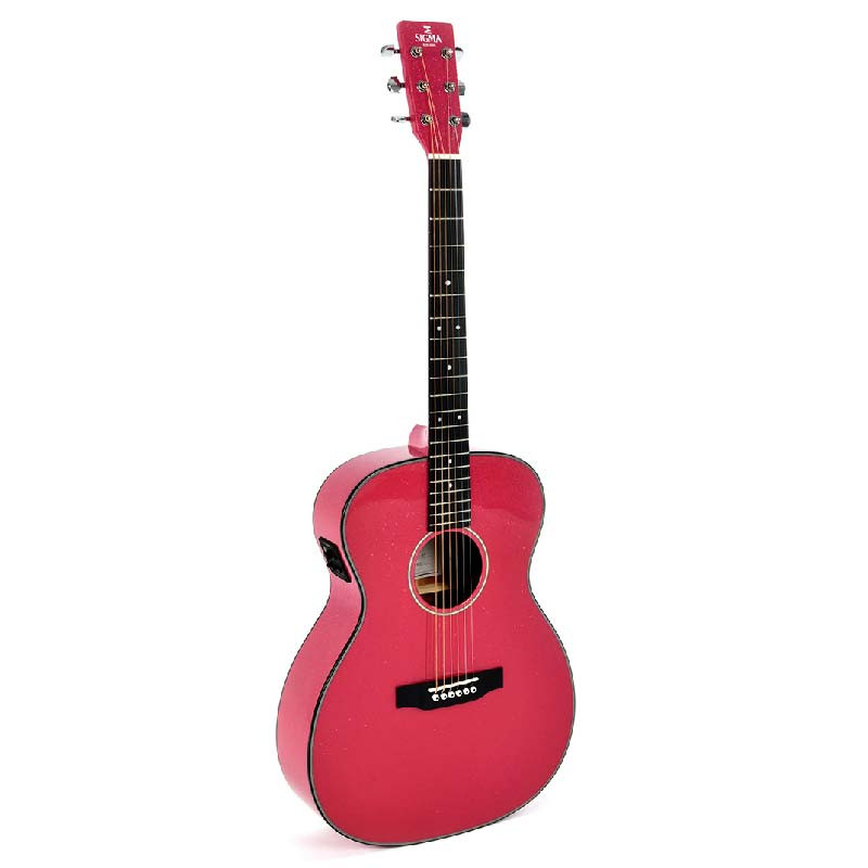 Sigma 000M-1E-MFP – акустическая гитара с электроникой Fishman Presys II, компактная и сбалансированная, для тех, кто хочет выделяться и в звучании, и в стиле. Форма 000 с 14 ладами вне корпуса обеспечивает динамику, четкий отклик и четкую артикуляцию: в фингерстайле или аккомпанементе. Но главная фишка – это глянцевое покрытие Metallic Flake Pink. Не пастельно-розовое, а электризирующее, блестящее и максимально провокационное. Гитара, которая говорит: "Я здесь - и я не играю по правилам."
