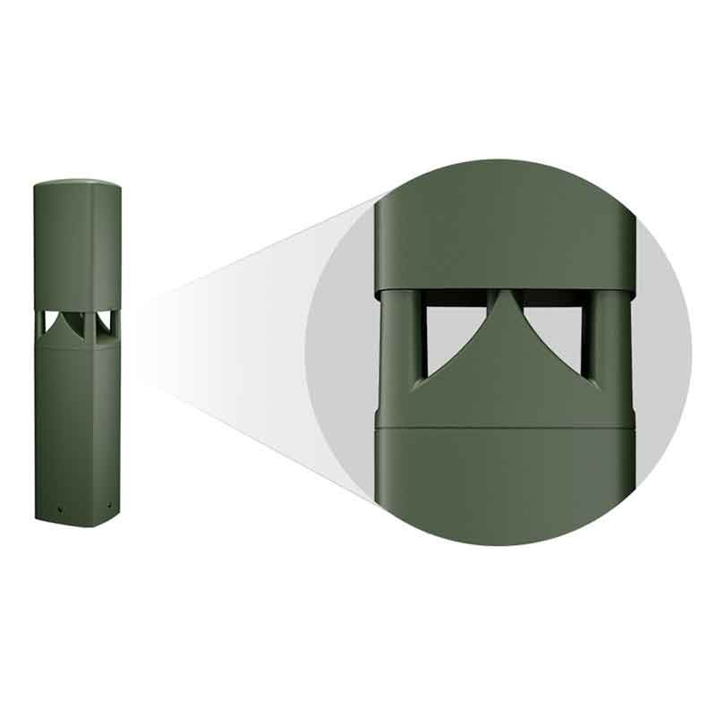 Конструкция: Двухполосная акустическая система в корпусе типа "боллард" (вертикальная столбчатая форма). Имеет приподнятую конструкцию, позволяющую звуку распространяться над препятствиями (растениями, мебелью).