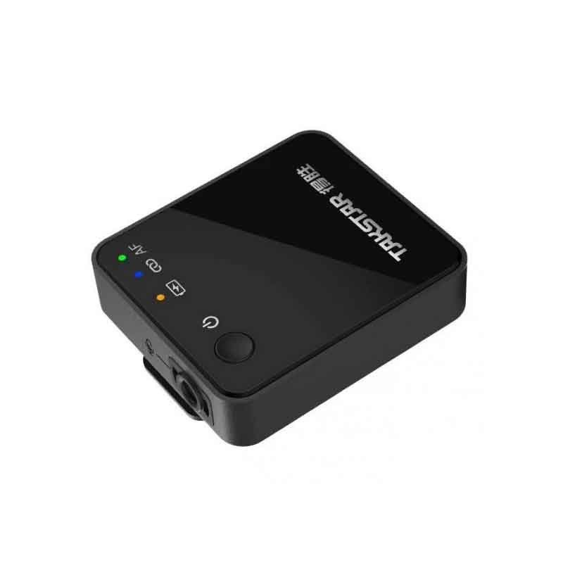 Внешне Takstar V1, как микрофон, так и ресивер, смотрится достаточно консервативно: перед нами черный квадратный модуль с закругленными гранями, выполненный из пластика и металла. Органов управления и разного рода светодиодов практический минимум: боковые грани имеют кнопки синхронизации и уровня записи (ресивер), порт USB type-C (оба), линейный (ресивер), наушниковый (микрофон) и микрофонный (микрофон) разъемы; лицевая панель – клавиша включения/синхронизации (микрофон), а также три диода с понятной маркировкой (оба). В свою очередь, на тыловой панели корпуса обоих модулей находится удобная клипса для быстрого крепления девайса на камеру, смартфон и другие поверхности. Важно отметить, что на микрофон можно "нацепить" и ветровую защиту, которая, к счастью, предусмотрена стандартной комплектацией.