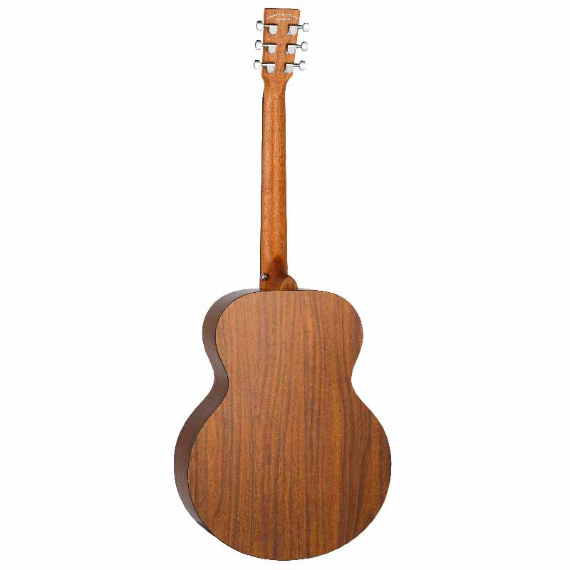 Основу инструмента составляет верхняя противень из ели — древесины, которая известна своим ясным, чувствительным тоном и способностью с годами раскрываться, приобретая более глубокое, насыщенное звучание. Задняя противня и обечайки изготовлены из коа – породы, отличающейся теплым средним диапазоном и роскошной текстурой. Благодаря конструкции из HPL-ламината (использований для верхней, задней дек и обечаек) гитара сохраняет как естественную красоту, так и стабильность к изменениям влажности и температуры – это идеальное решение для музыкантов, часто путешествующих или выступающих на разных сценах.