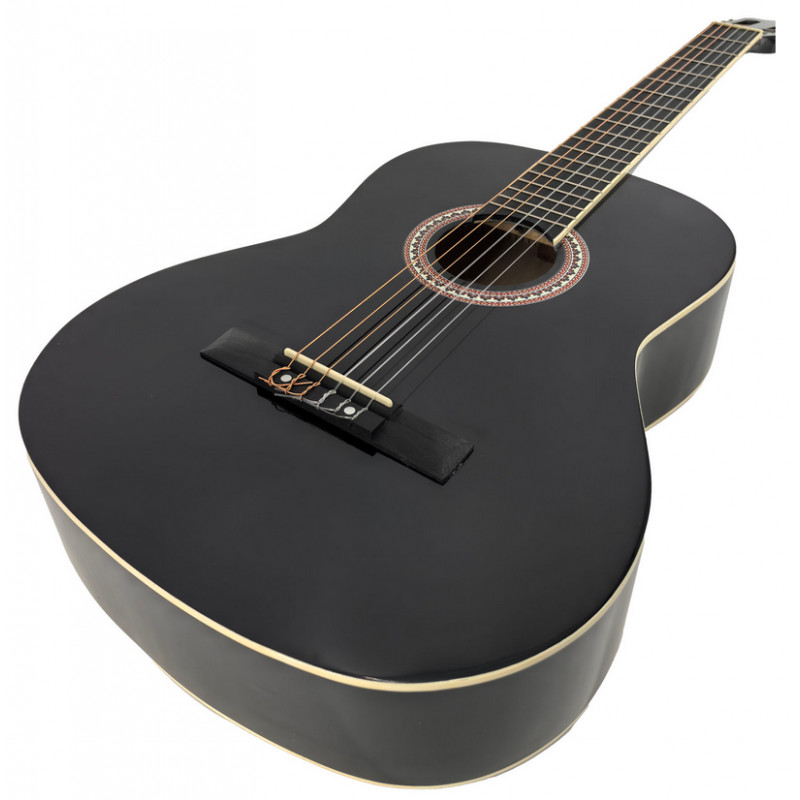 Toneberg EC3900-BK — классическая гитара полного размера, которая станет верным спутником на пути музыкального самовыражения. Этот 39-дюймовый инструмент создан для тех, кто ценит чистоту звука и комфорт игры, объединяя традиционные решения с современными материалами.