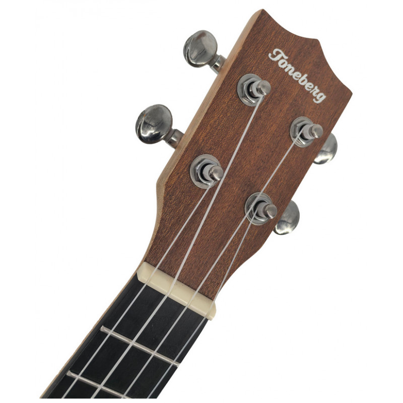Toneberg 24THX — это укулеле концертного размера, которое объединяет классическое гавайское звучание с современным комфортом игры. Инструмент создан из качественного ламината махагони с матовой отделкой, что обеспечивает теплый, бархатистый тембр и элегантный внешний вид.