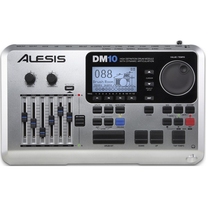 ALESIS DM10 - перший ударні модулі для завантаження нових тембрів з комп'ютера через USB-з'єднання. Це дозволить постійно оновлювати тембри, зберігаючи при цьому можливість використовувати сучасні і просунуті тембри. Модуль ALESIS DM10 як інтерфейс тригера до MIDI для продуктивності та відстеження за допомогою програмних модулів, таких як BFD, Toontrack та Reason. Для практики можна виконувати паралельно зі звуком внутрішнього секвенсера ALESIS DM10, змішувати результат і записувати його в iPod або інший MP3-плеєр для подальшого відтворення. ALESIS DM10 оснащений 12 входами тригерів, які ідеально підходять для користувальницьких конфігурацій. Верхня панель полегшує створення власних сумішей.