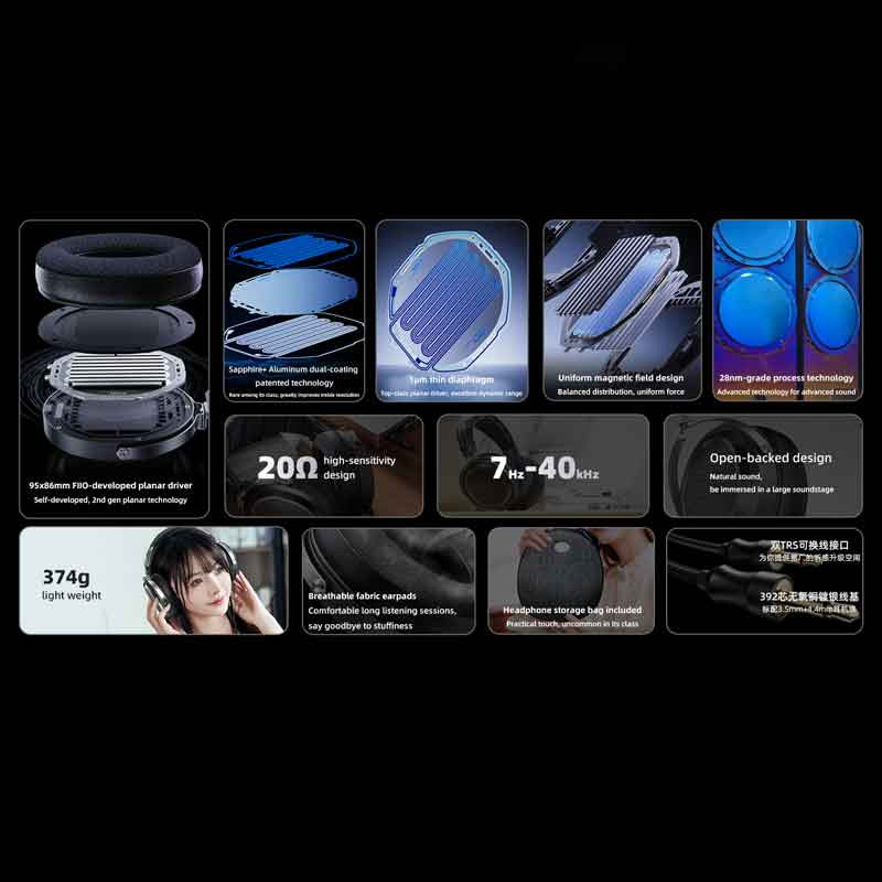 Незважаючи на наявність великого планарного драйвера з двостороннім магнітом, навушники FiiO FT1 Pro важать лише 374 г. Вони легкі, комфортні та підходять для тривалого носіння.