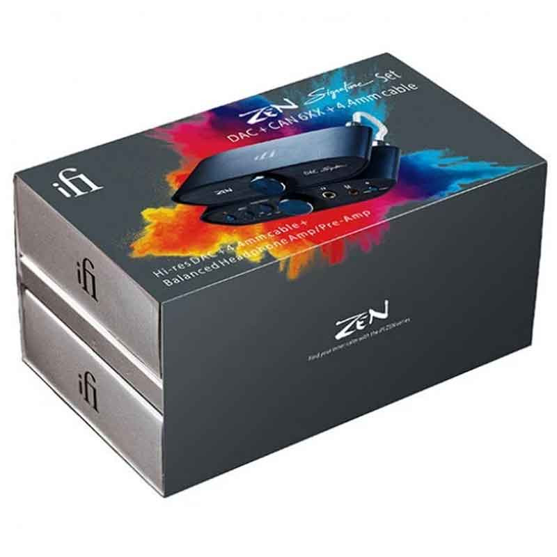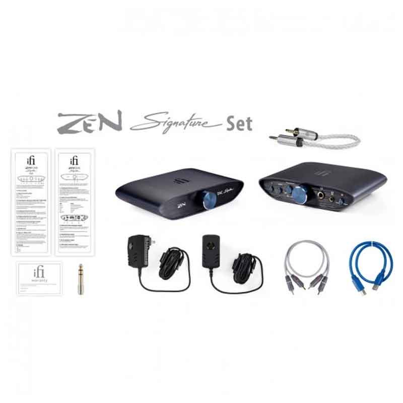 iFi ZEN Signature Set 6XX (Black) - комплект ЦАП та підсилювач. Настільний аудіофільський сет, який складається з мультибітного ЦАП iFi Zen DAC Signature V2 та потужного підсилювача для навушників iFi Zen CAN Signature 6XX. Примітно, що підсилювач для навушників має фірмову опцію (можна відключити) адаптації вихідних характеристик під параметри повнорозмірних навушників Sennheiser 600-тої серії. Про кожен компонент сетапу Ви можете прочитати на його сторінці.