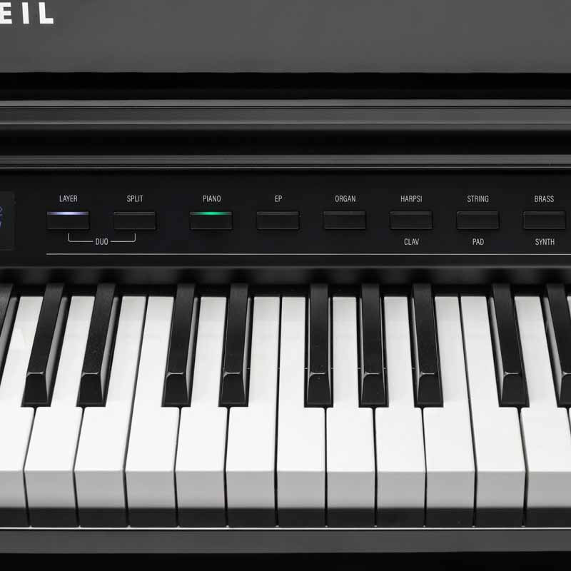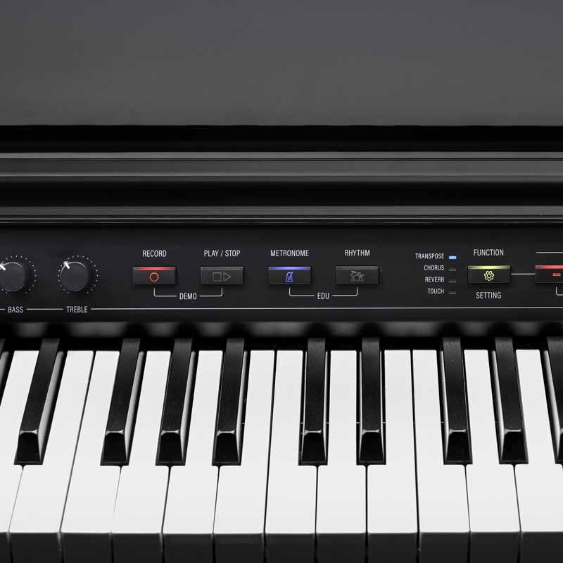 Виточені з високою точністю чорні клавіші відтворюють текстуру дерева, а білі мають покриття під слонову кістку, щоб достовірно відтворити всі нюанси та автентичні відчуття від гри на справжньому акустичному роялі.
