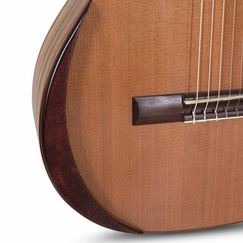 Academia – найдоступніша серія класичних гітар Manuel Rodríguez зі справжньою іспанською п'ятою, королівський клас у гітарному світі. Завдяки цьому особливому методу виготовлення, гриф з одного шматка деревини продовжується всередину корпусу і безпосередньо з'єднаний з боковинами, задньою та верхньою деками. Це забезпечує не тільки надзвичайну стабільність, але й оптимальну передачу вібрацій, швидший відгук і довший сустейн. Іспанська п'ята – серце іспанської класичної гітари, детальніше про цей метод виготовлення можна прочитати тут.