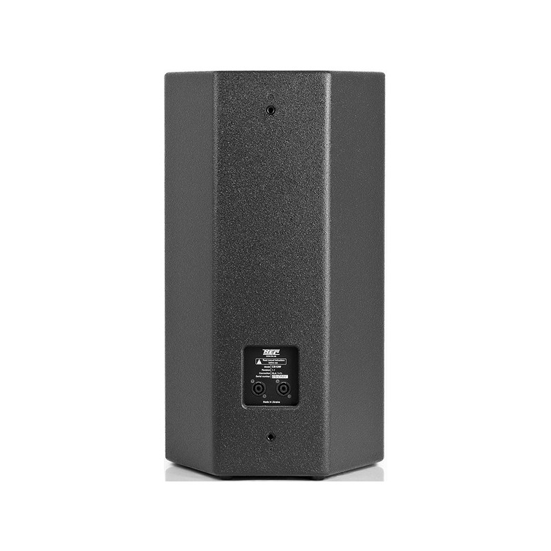 REC CS 12L - двошлікарна пасивна акустична система, 60 Гц - 20 кГц, 600 Вт, імподність 8 Ом, чутливість 98 дБ, тиск 132 дБ макс., 12" Nch динамік q1.4" неодимовий драйвер ВЧ з мундштуком 90 х 40 q або 60 х 40 градусів, частота перетину кросовера 900 Гц, корозія 2 х Neutrik Speakon, розміри 656 х 365 х 391 мм, 27 кг, можливість підвіски.