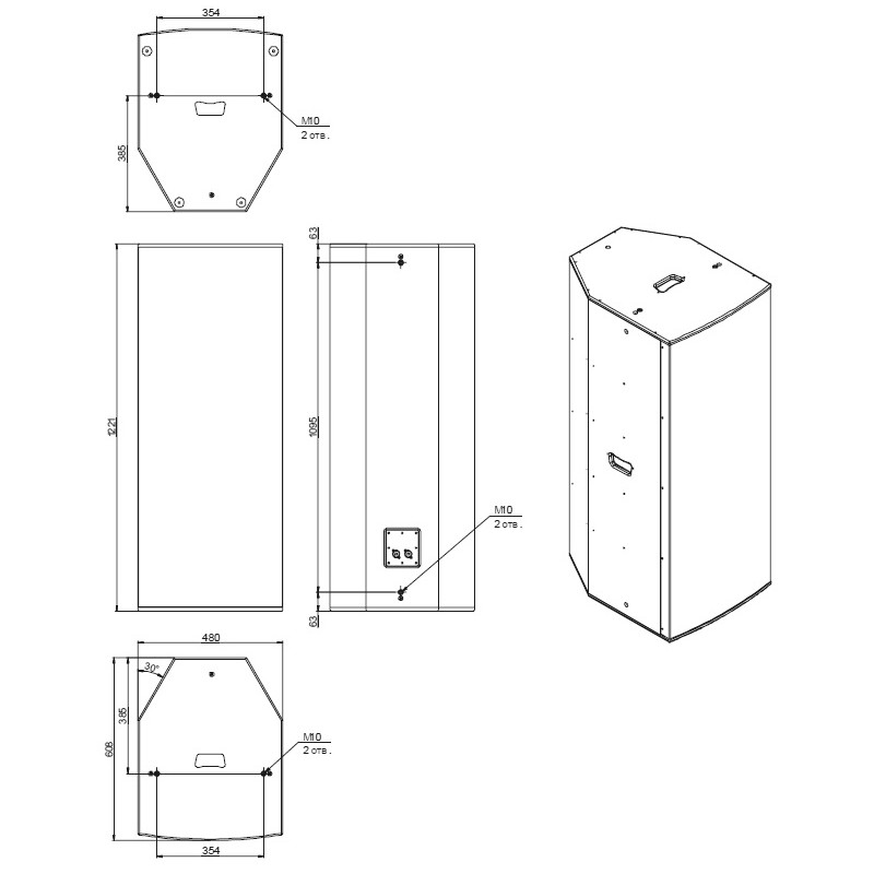 REC CS215 - пасивна акустична система, потужність: 1300/2500/10000 Вт, номінальний/RMS/пік), номінальний опір: 4 Ом, діапазон частот: 45 Гц -20 кГц, кути фокусування: 90 х 30 градусів, максимальний звуковий тиск: 141B (пік).