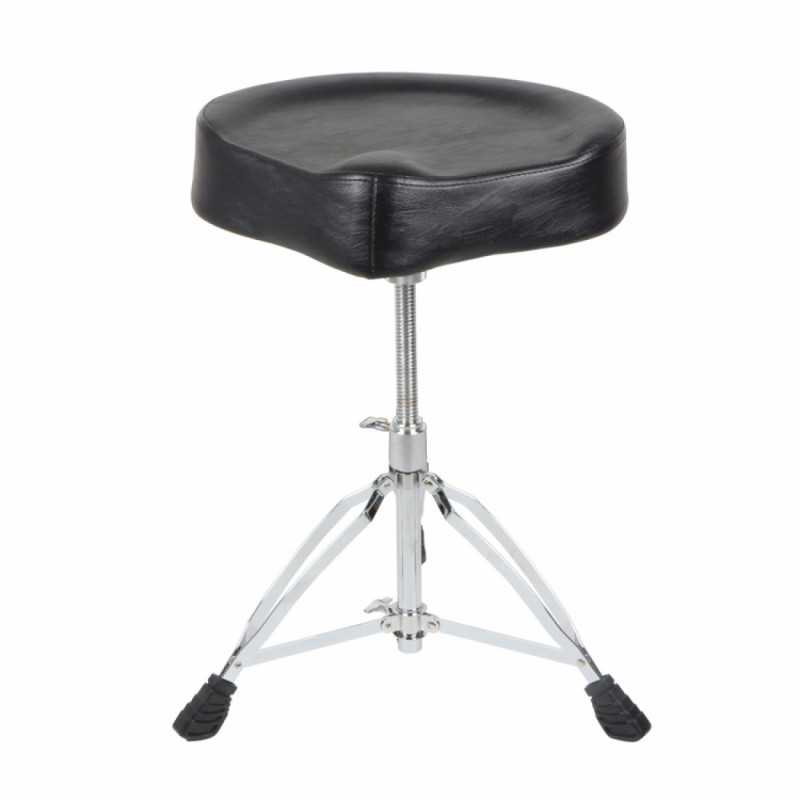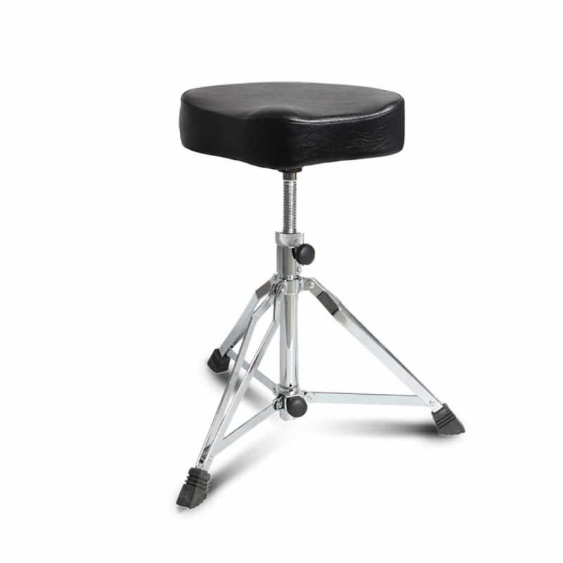 Універсальне крісло для музиканта з трапецієподібним сидінням і регулюванням висоти від 46 см до 63 см Колір сидіння - чорний, довжина сидіння - 40 см, ширина - 9,5 см Подвійні підтягнуті ноги (34 см) забезпечують відмінну міцність і велику стійкість. На ногах є гумові наконечки, щоб не допустити ковзання крісла.
