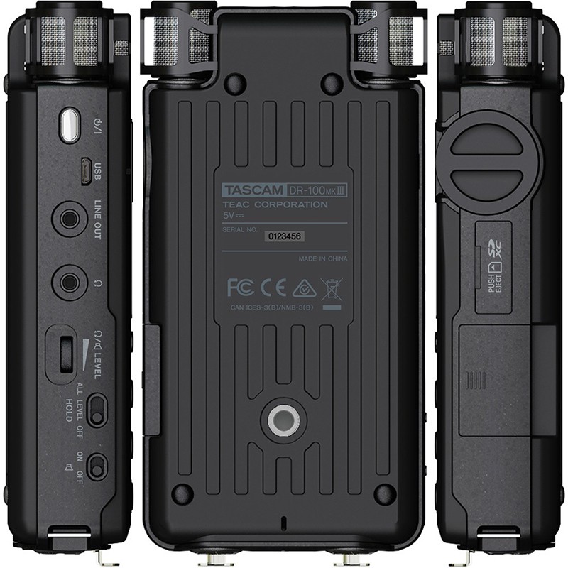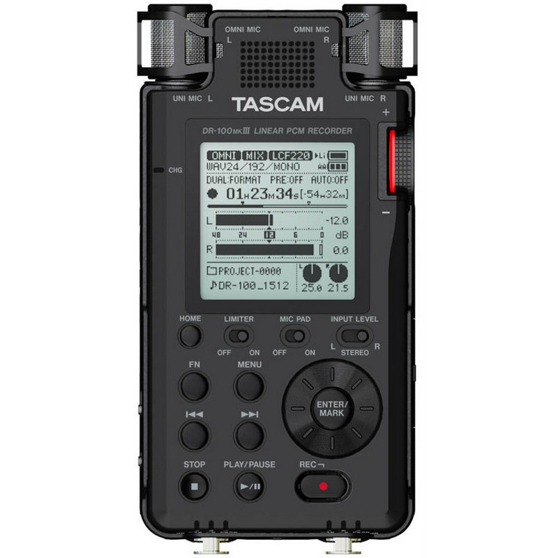 Реєстратор TASCAM DR-100 MK3 заснований на попередньому TASCAM DR-100 MK2. Новий записувач TASCAM DR-100 MK3 забезпечує кращу якість запису звуку завдяки поліпшенню «начинки» і перевершує свого попередника з точки зору функціональності і простоти використання. Традиційно диктофон ТАСКАМ DR-100 MK3 оснащений 4 вбудованими конденсаторними мікрофонами: 2 спрямованими і 2 непрямими. Спрямовані мікрофони мають протишокову підвіску для зменшення шуму в робочому стані.