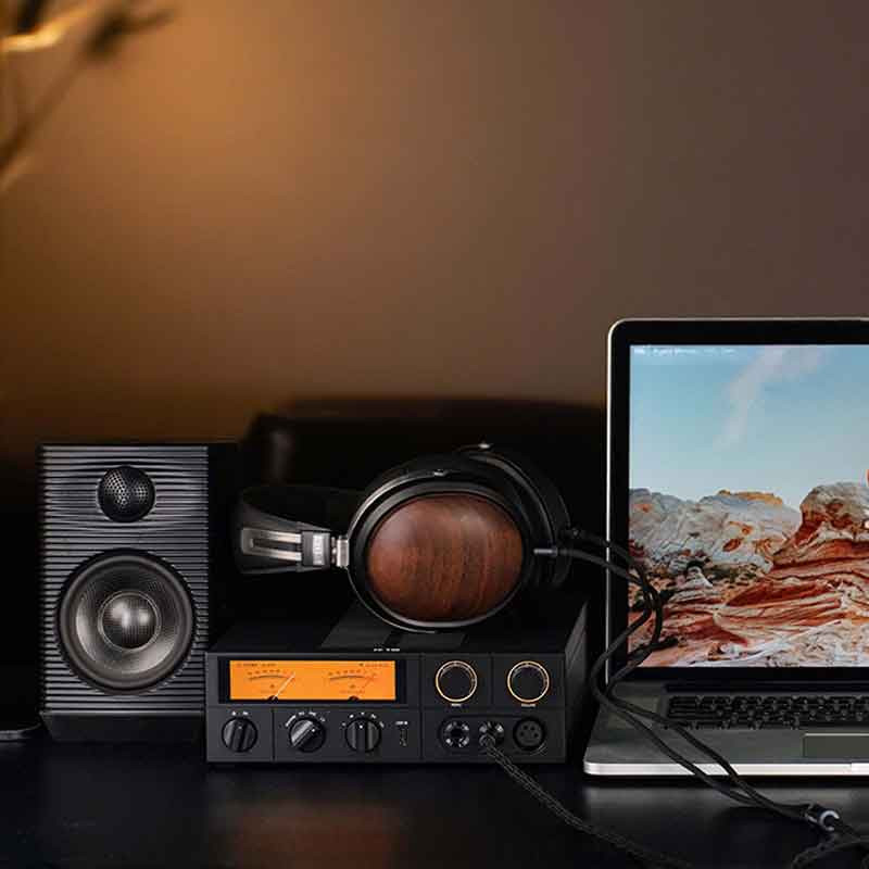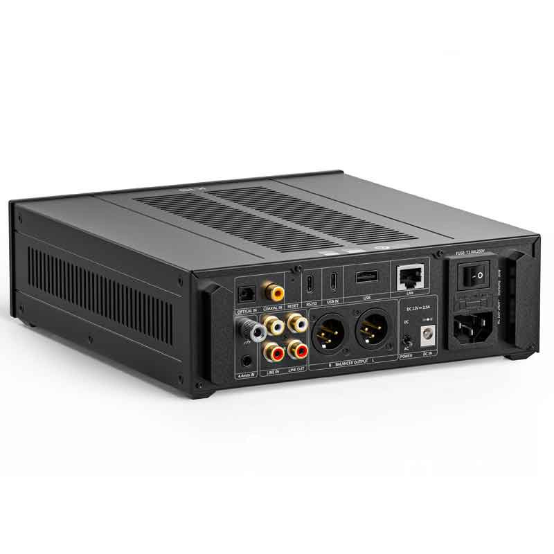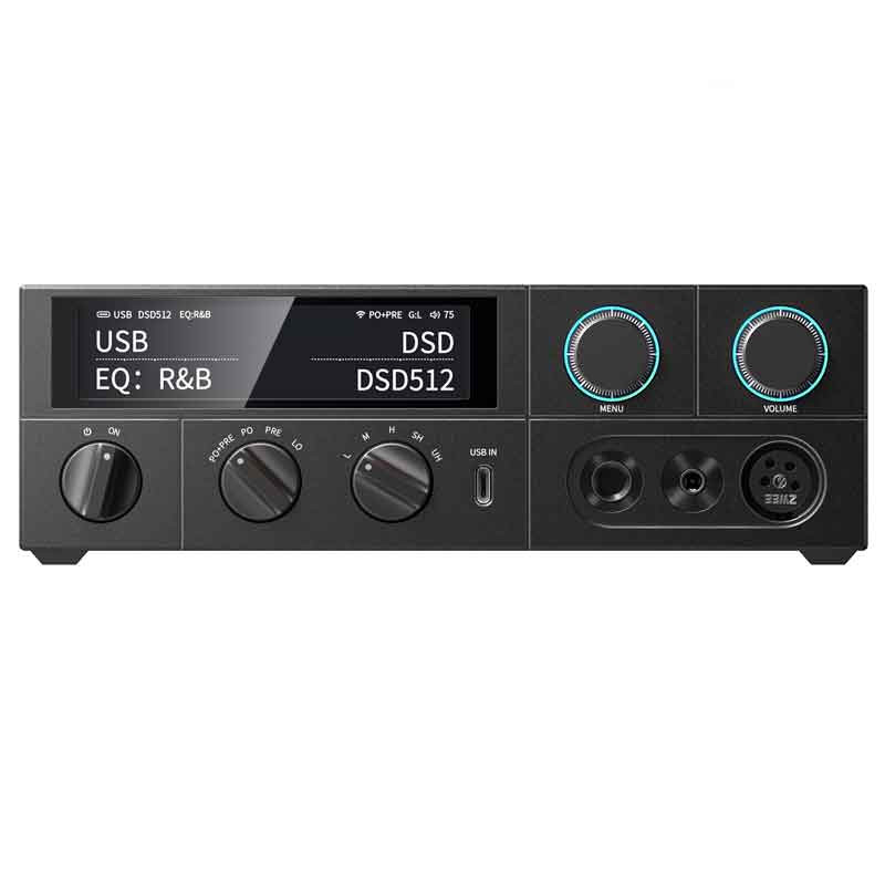 Підсилювач працює в класі AB та здатний видавати до 3 Вт на балансних виходах, що дозволяє підключати як чутливі IEM, так і повнорозмірні навушники. На передній панелі розташовані роз'єми 6,35 мм, 4,4 мм і міні-XLR для підключення навушників, а також два поворотні регулятори з підсвічуванням для керування гучністю та навігації по меню на 4-дюймовому сенсорному дисплеї.