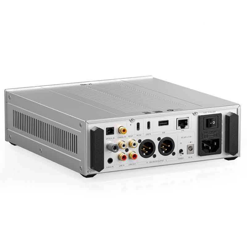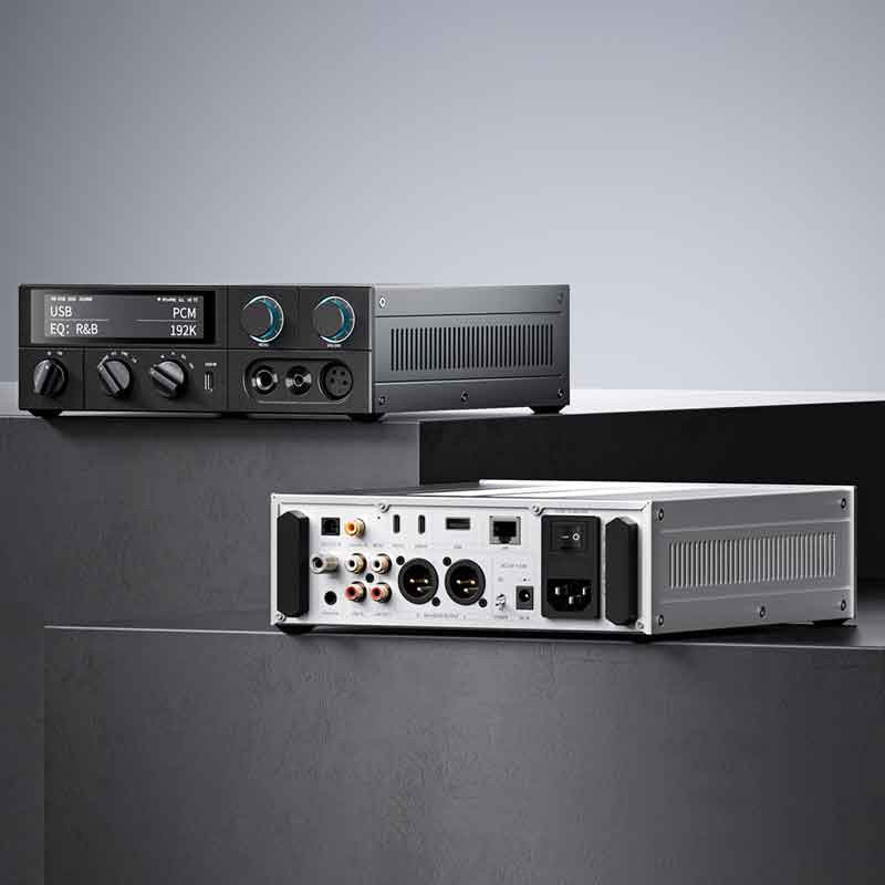 Підсилювач працює в класі AB та здатний видавати до 3 Вт на балансних виходах, що дозволяє підключати як чутливі IEM, так і повнорозмірні навушники. На передній панелі розташовані роз'єми 6,35 мм, 4,4 мм і міні-XLR для підключення навушників, а також два поворотні регулятори з підсвічуванням для керування гучністю та навігації по меню на 4-дюймовому сенсорному дисплеї.