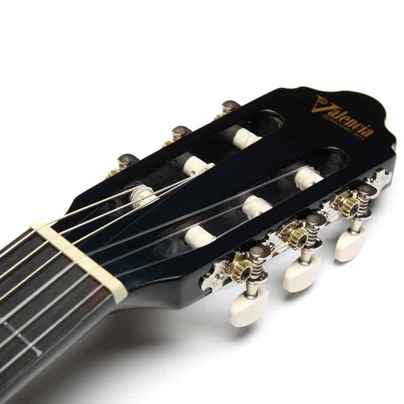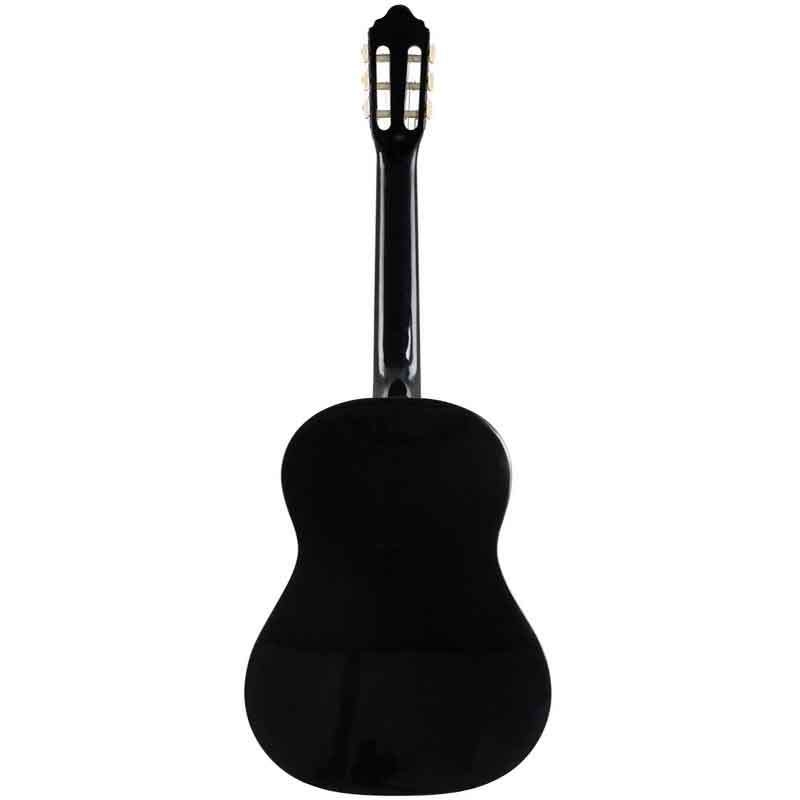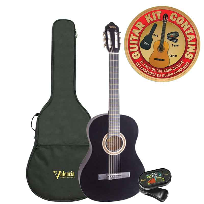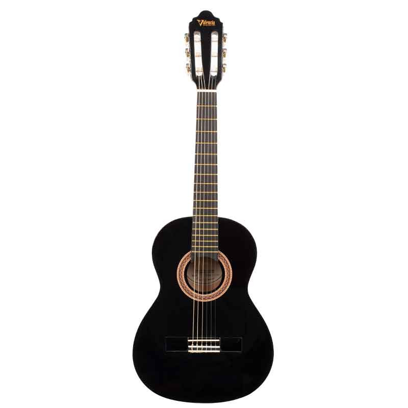 Valencia VC103K 3/4 - класична гітара 3/4, що комплектується чохлом і тюнером. Ця класична гітара, яка входить до початкової 100-ї серії виробника та постачається у повноцінному комплекті, орієнтованому на музикантів-початківців. Літера "K" у назві вказує на те, що це комплект (Kit), який зазвичай включає чохол та тюнер. Завдяки конструкції та матеріалам (Липа) забезпечує чистий та резонансний голос, м'який у верхніх частотах, що ідеально підходить для класичного стилю гри. Повнорозмірна мензура (650 мм) дозволяє гітаристам розвивати правильну класичну техніку гри на нейлонових струнах. Valencia VC104K BK — це економічно вигідний і повністю оснащений комплект для тих, хто тільки починає вчитися грати на класичній гітарі.