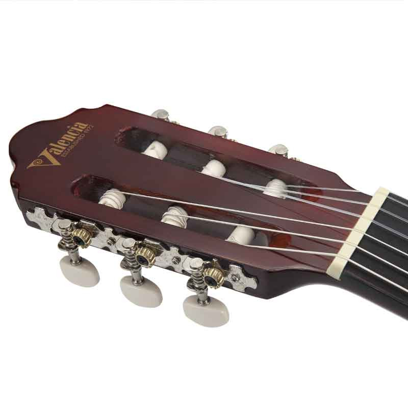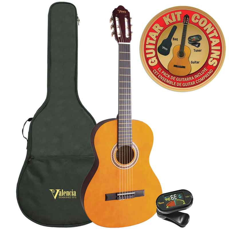 Valencia VC104K 4/4 - класична гітара 4/4, що комплектується чохлом і тюнером. Ця класична гітара, яка входить до початкової 100-ї серії виробника та постачається у повноцінному комплекті, орієнтованому на музикантів-початківців. Літера "K" у назві вказує на те, що це комплект (Kit), який зазвичай включає чохол та тюнер. Завдяки конструкції та матеріалам (Липа) забезпечує чистий та резонансний голос, м'який у верхніх частотах, що ідеально підходить для класичного стилю гри. Повнорозмірна мензура (650 мм) дозволяє гітаристам розвивати правильну класичну техніку гри на нейлонових струнах. Valencia VC104K BK — це економічно вигідний і повністю оснащений комплект для тих, хто тільки починає вчитися грати на класичній гітарі.