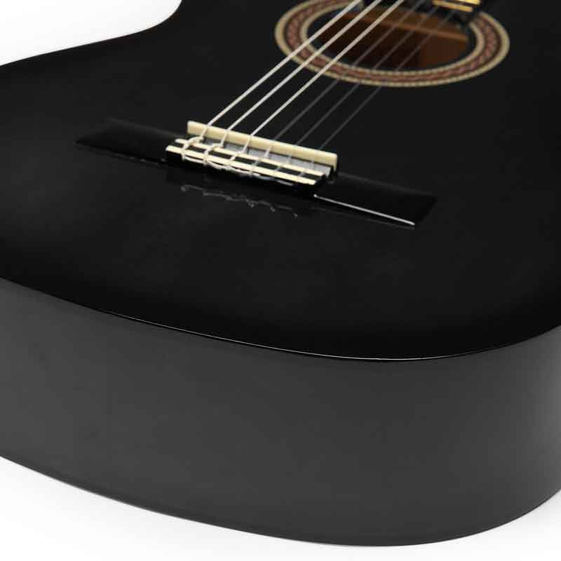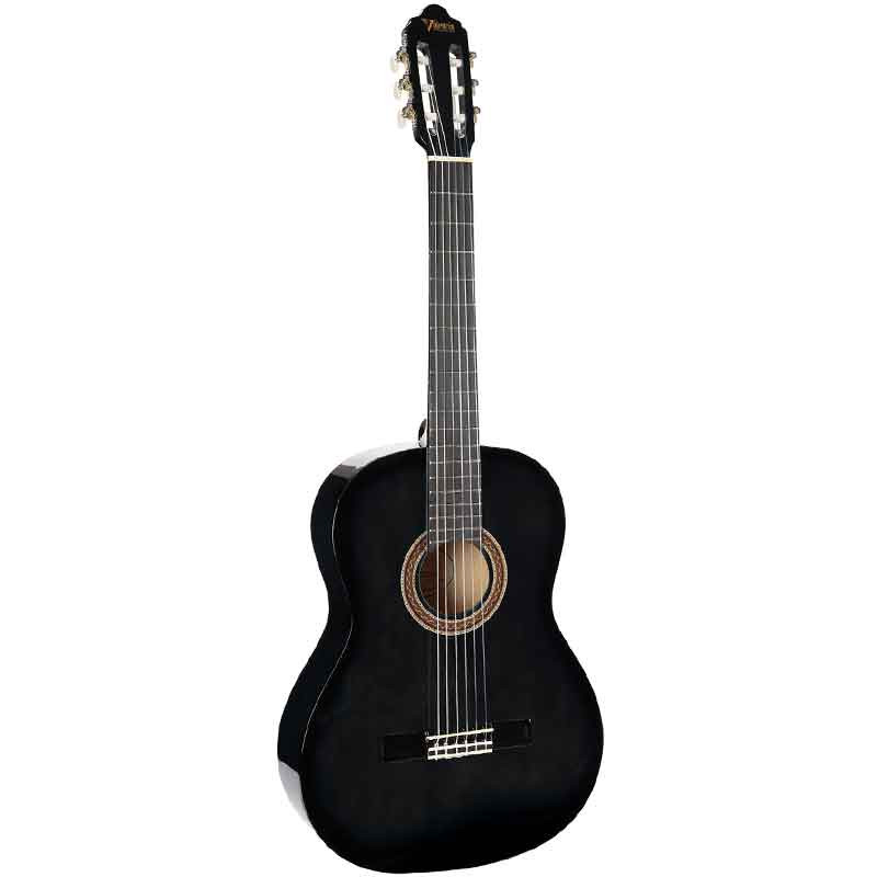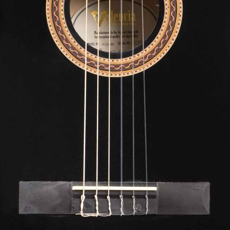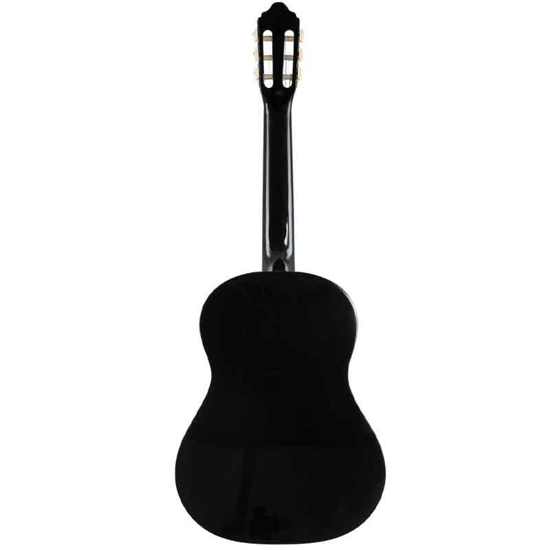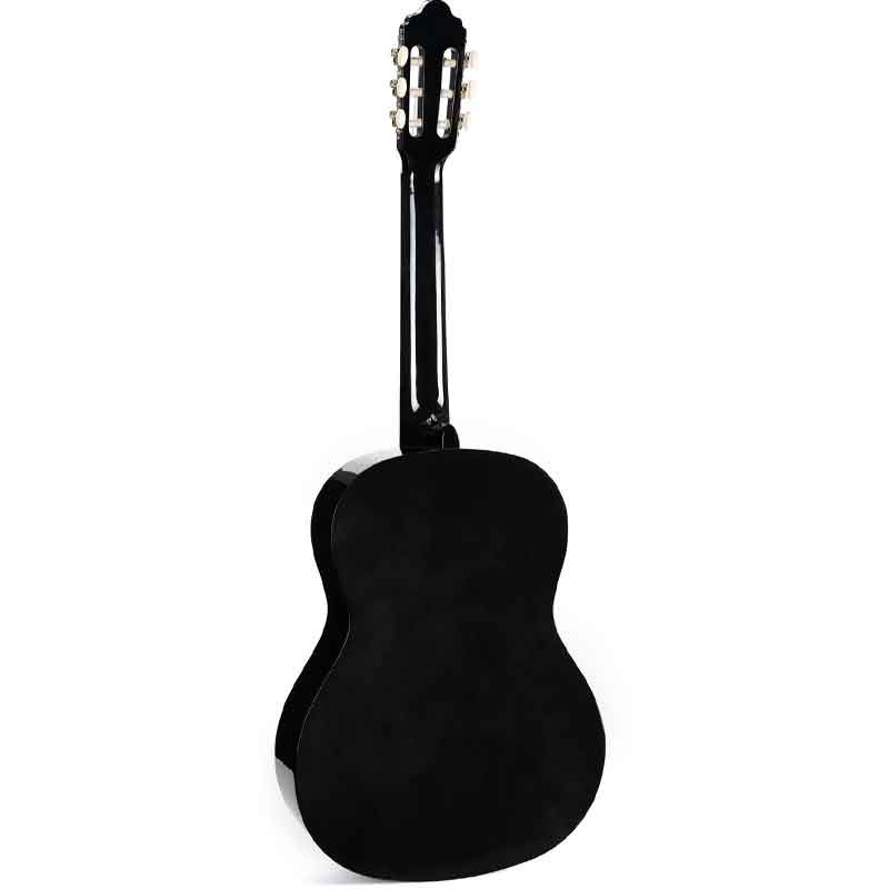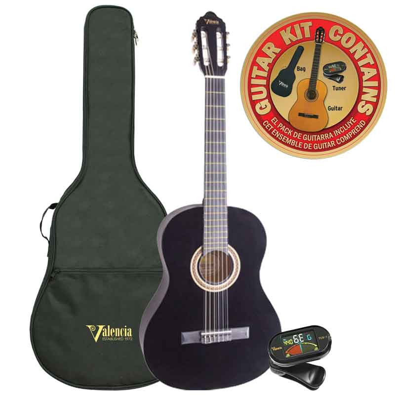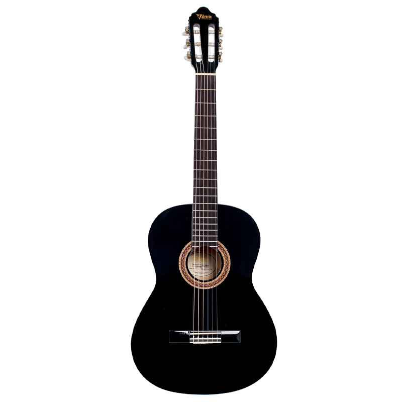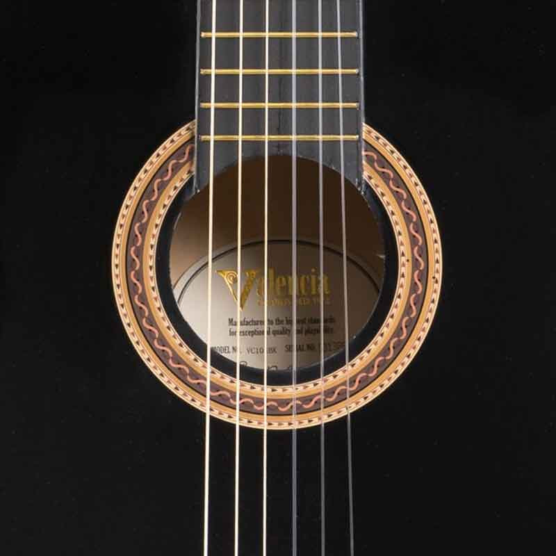 Valencia VC104K BK 4/4 - класична гітара 4/4, що комплектується чохлом і тюнером. Ця класична гітара, яка входить до початкової 100-ї серії виробника та постачається у повноцінному комплекті, орієнтованому на музикантів-початківців. Літера "K" у назві вказує на те, що це комплект (Kit), який зазвичай включає чохол та тюнер. Завдяки конструкції та матеріалам (Липа) забезпечує чистий та резонансний голос, м'який у верхніх частотах, що ідеально підходить для класичного стилю гри. Повнорозмірна мензура (650 мм) дозволяє гітаристам розвивати правильну класичну техніку гри на нейлонових струнах. Valencia VC104K BK — це економічно вигідний і повністю оснащений комплект для тих, хто тільки починає вчитися грати на класичній гітарі.